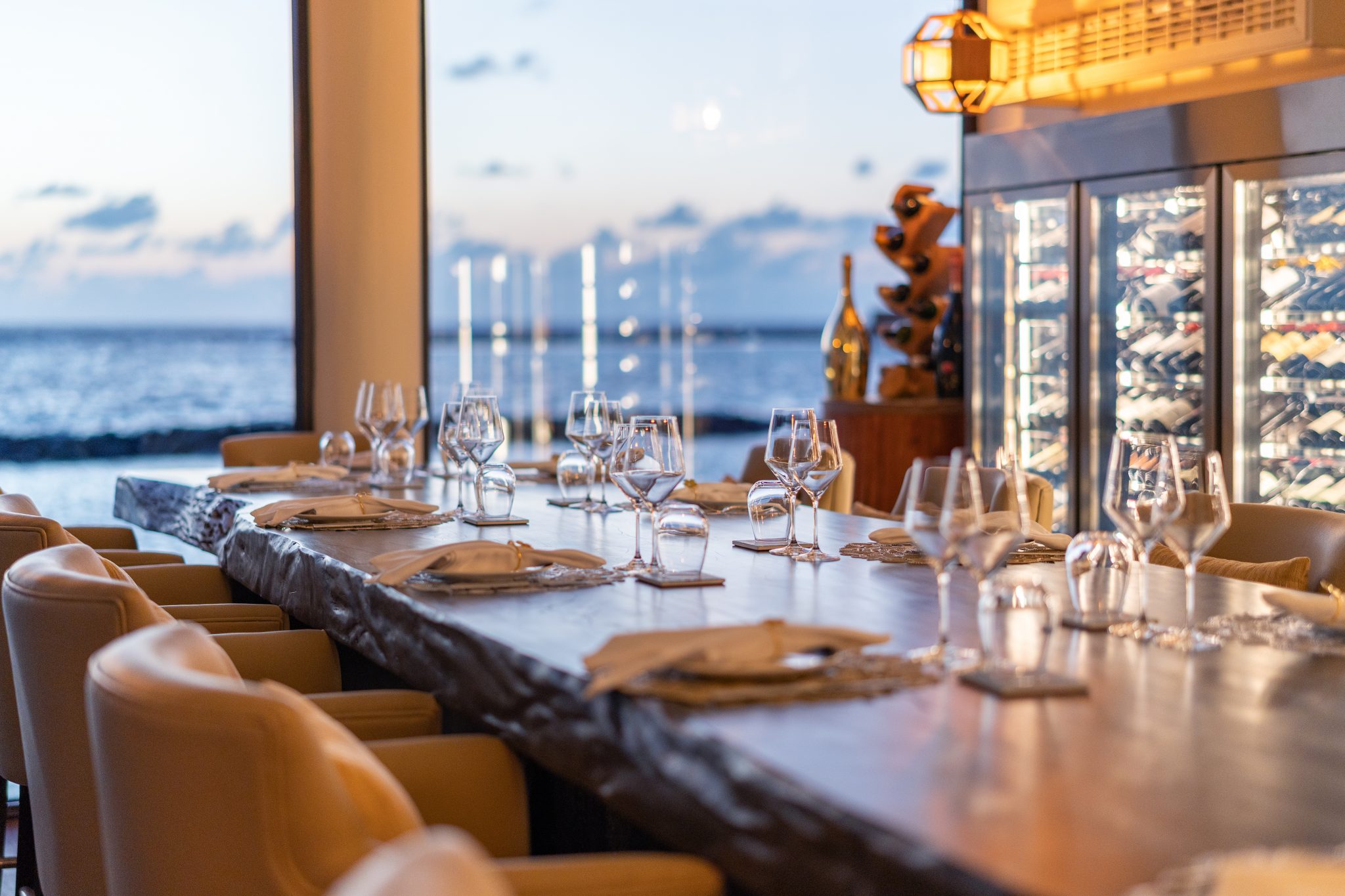 As the day draws to a close and the sun sets over the Indian Ocean, Cellar at NÜ provides a contrasting yet complementary experience. This refined overwater wine degustation lounge has been curated for wine enthusiasts and curious newcomers alike, offering rare vintages and exclusive labels in a serene, contemporary environment. Guests can explore thoughtfully paired chocolate, cheese, and charcuterie platters, with the signature highlight being the six-course Royal Wine Pairing Dinner, which presents a carefully choreographed progression of flavours. The setting positions VARU by Atmosphere as not only a beach escape, but also as a sophisticated dining destination that appeals strongly to premium leisure travellers and couples seeking elevated evening experiences.