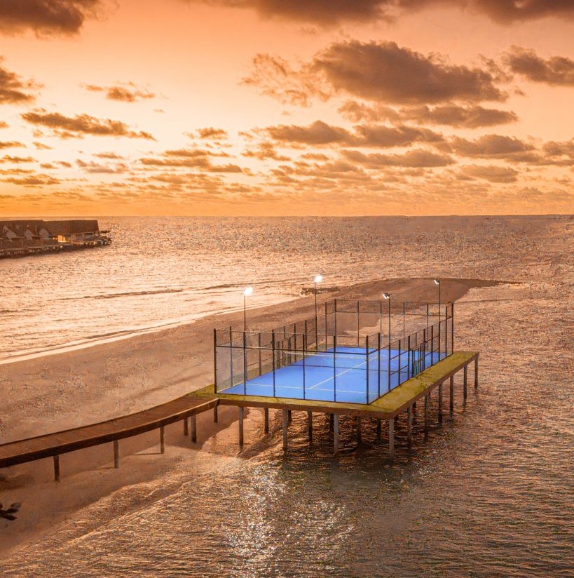 Wellness and recreation form a central part of the resort’s identity. The overwater Veyoge Spa provides an immersive sanctuary inspired by Maldivian healing traditions, offering aerial yoga sessions, therapeutic body treatments, and restorative rituals designed to promote balance and relaxation. Complementing the wellness offerings are a 24-hour overwater fitness centre, a floodlit tennis court, a multipurpose sports court, and a fully equipped dive and water-sports centre, ensuring guests can seamlessly combine relaxation with active exploration of the island and surrounding marine environment.