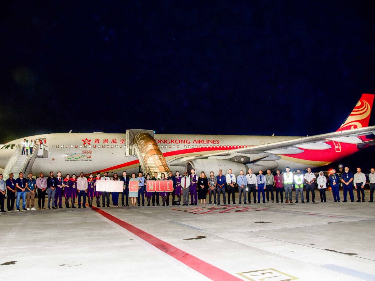 Maldives Marketing and Public Relations Corporation (MMPRC/Visit Maldives) welcomed the first direct flight from Hong Kong to the Maldives since 2020. Today, a special ceremony was held at Velana International Airport to mark the joyous occasion, commemorating the arrival of Hong Kong Airlines flight HX791 from Hong Kong International Airport, carrying tourists from this market to the Maldives.