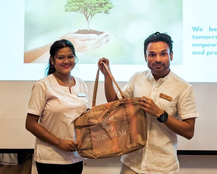 These meticulously crafted beach bags, distributed among new team members, epitomize Sun Siyam Iru Fushi’s holistic approach to sustainability. They embody the resort’s ethos of integrating eco-friendly initiatives into every facet of its operations, reflecting a shared sense of responsibility and care for the environment.